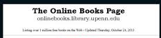 ![]() | The Online Books Page The Online Books Page. Listing over 3 million free books on the Web – Updated Tuesday, December 2, 2025. BOOKS ONLINE · Search our Listings — New Listings |